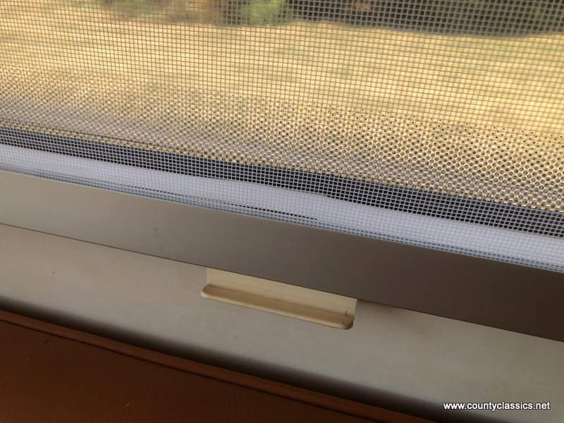 Full bathroom with flushing Thetford toilet, wash basin, chrome tap, various shelves, 2 cupboards, Downlighter’s, vanity mirror, opening window with pull down fly screen and blind.