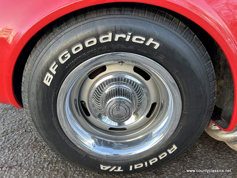 Original steel wheels with hub caps, trim rings and raised letter B/F Goodrich tyres all round.