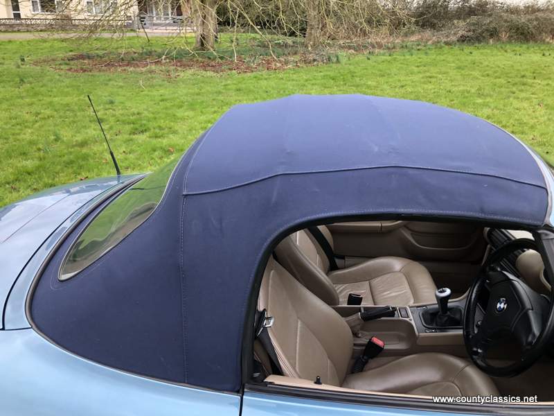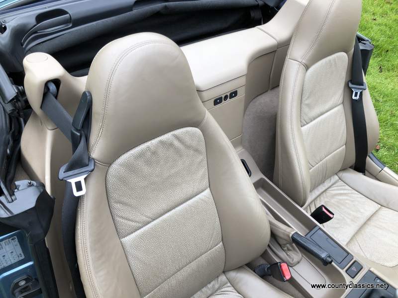 A beautiful car in James Bond ‘Goldeneye’ spec trim, service history, in immaculate condition. Lovely Atlanta blue with speckled beige leather interior and quality mohair royal blue soft top.