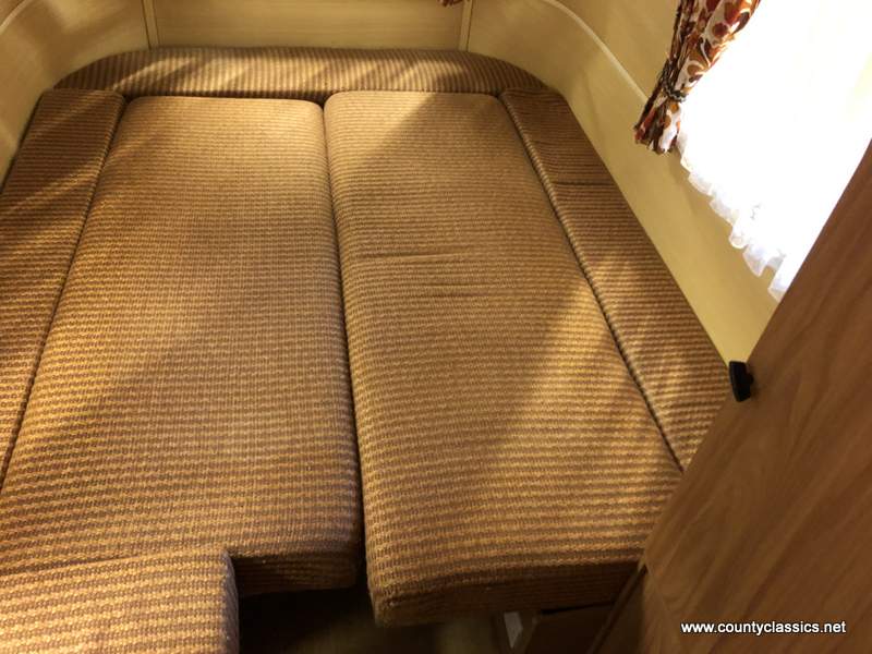 Twin sofas / dinette seating, which folds down to a large double bed (6ft 4” x 5ft wide).