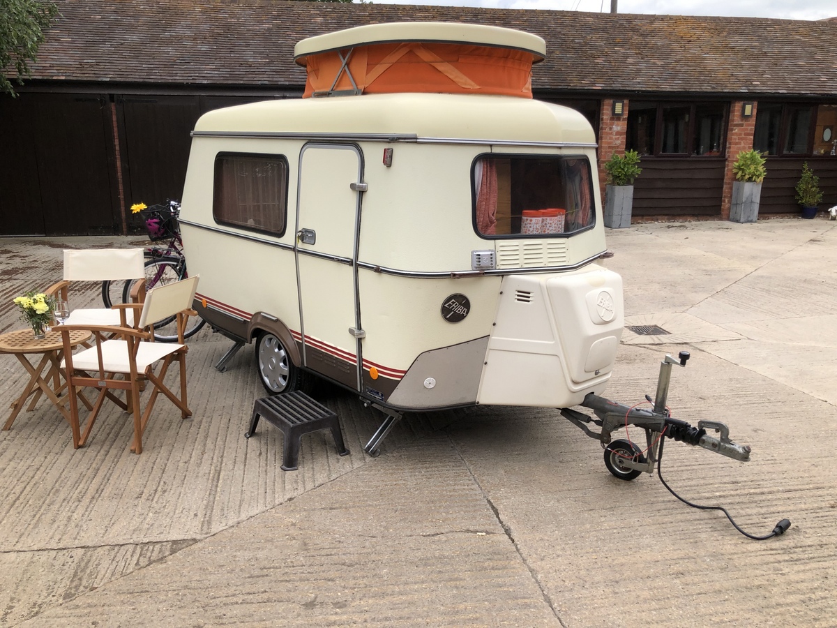 ERIBA PUCK Classic mini pop top caravan 1988. Very good condition throughout. Internal specification: 2 berth layout, as twin singles, or a double bed. Completely original and immaculate interior. Electrolux fridge. 2 burner gas hob with folding worktop cover. Stainless steel sink with tap with folding worktop cover. Water container. Slim panel electric radiator. Lighting. 240v sockets and hook up facility. Wardrobe and cupboard / folding mirror. Removable dining table (can also be used externally). Wastewater container. Free standing step. Easy to use pop top in good condition (spare pop top canvass). Wind down steadies (with winding handle). Jack, spare wheel. Gas bottle. External specification: Excellent 13” tyres with ally effect wheel trims. Spare wheel underneath. 4 x manual wind down steadies with crank handle. Jockey wheel. Handbrake. Propane bottle in locked plastic compartment. Awning. It comes with original Dutch documentation from Eriba. Length 3.2 metre (4m inc tow bar) 13ft total. This is a lovely compact van, ideal for 2. These Pucks have an enthusiastic owners’ group and following and have fast become a real classic. It is very clean and tidy inside and out, no damp or corrosion, as it has been very well cared for and properly stored. £6,499 www.vintagerv.co.uk 07595 218406 andylerry@hotmail.co.uk